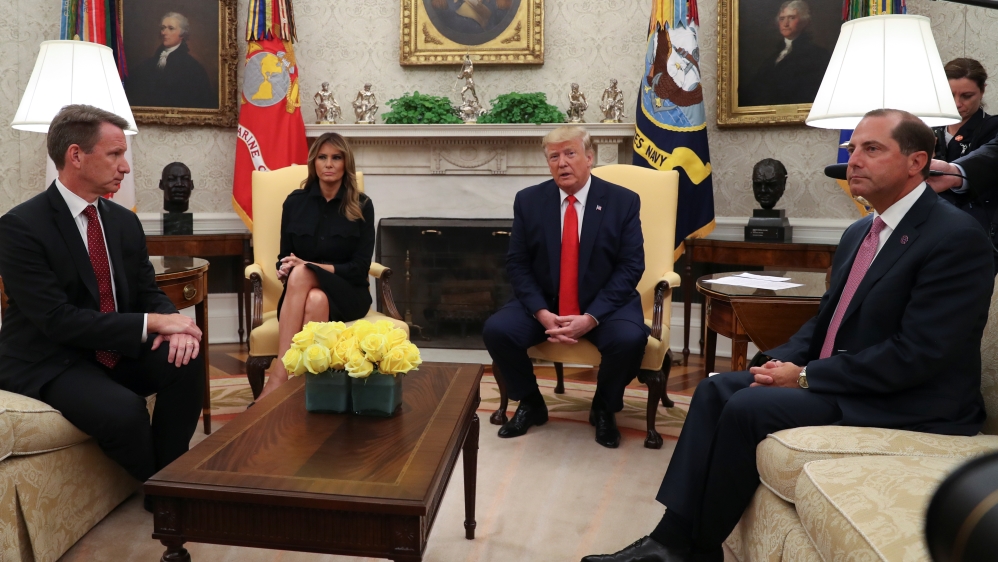 US Department of Health and Human Services Secretary Alex Azar told reporters at a meeting with Trump in the Oval Office on Wednesday that children were becoming addicted to nicotine due to attractive flavours of e-cigarettes.