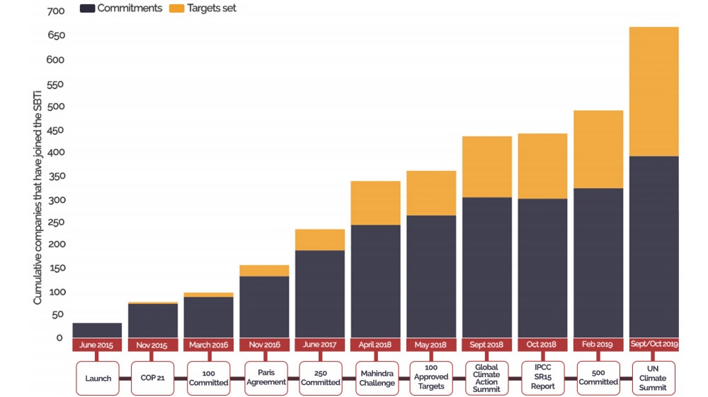 Companies have been increasing their commitments to and their targets for reducing greenhouse gas emissions [Science Based Targets initiative]