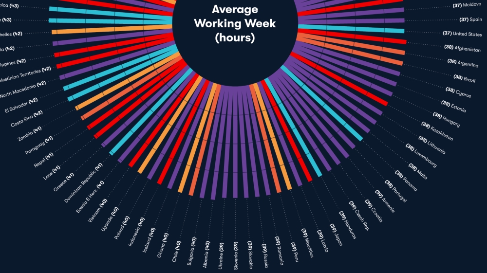 Assessing the nations where people toil the most and least hours per week, as Labor Day is celebrated in North America.