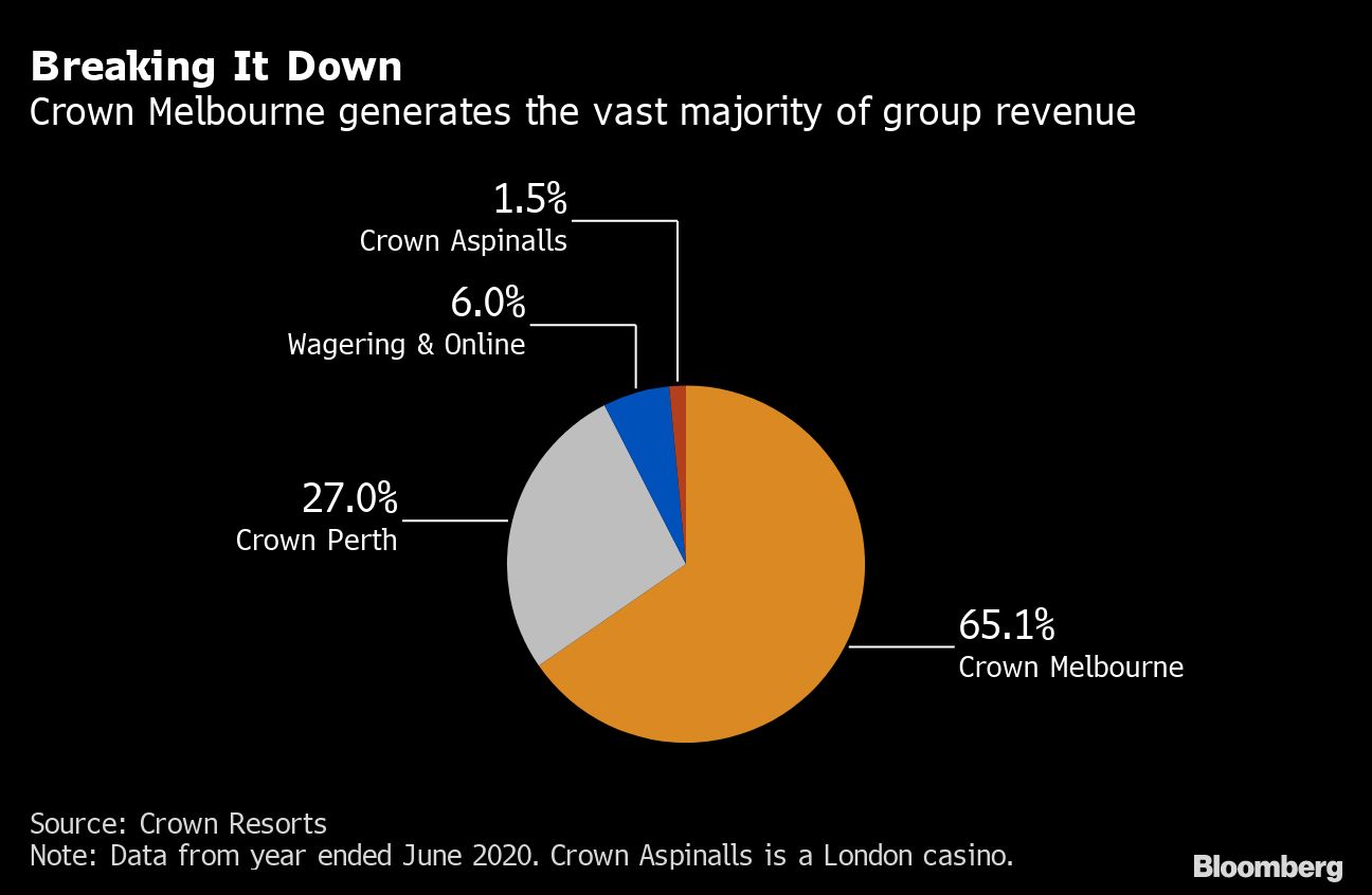 Crown’s gambling operations began to unravel with a crackdown by authorities in mainland China in late 2016, leading to the arrest and conviction of more than a dozen employees. By the end of that year, Crown had scrapped a spinoff of its international assets, including a stake in Macau casino operator Melco Resorts & Entertainment Ltd., and started a retreat to Australia.
