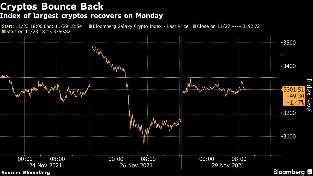 The largest digital asset rose as much as 3.4% during the session to trade around $58,266. Other coins also posted snap-backs, with the Bloomberg Galaxy Crypto Index adding 5.5% at one point. So-called alternative coins like Polkadot and Dogecoin gained too.