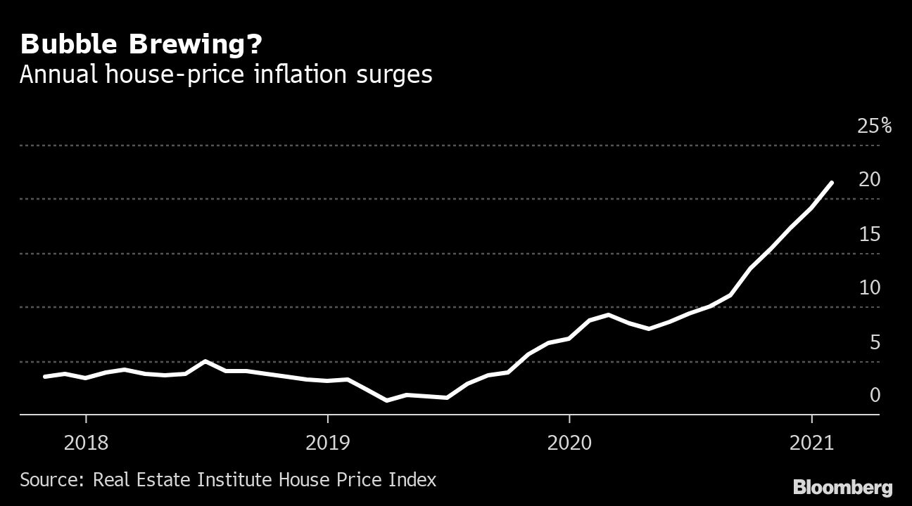 New Zealand’s success in battling Covid-19 has seen its economy recover sooner than many others, putting it at the forefront of a global property boom as ultra-loose monetary policies encourage investment in higher-yielding assets. House prices surged 21.5% in the year through February and investors accounted for more than 40% of purchases that month, a record high.