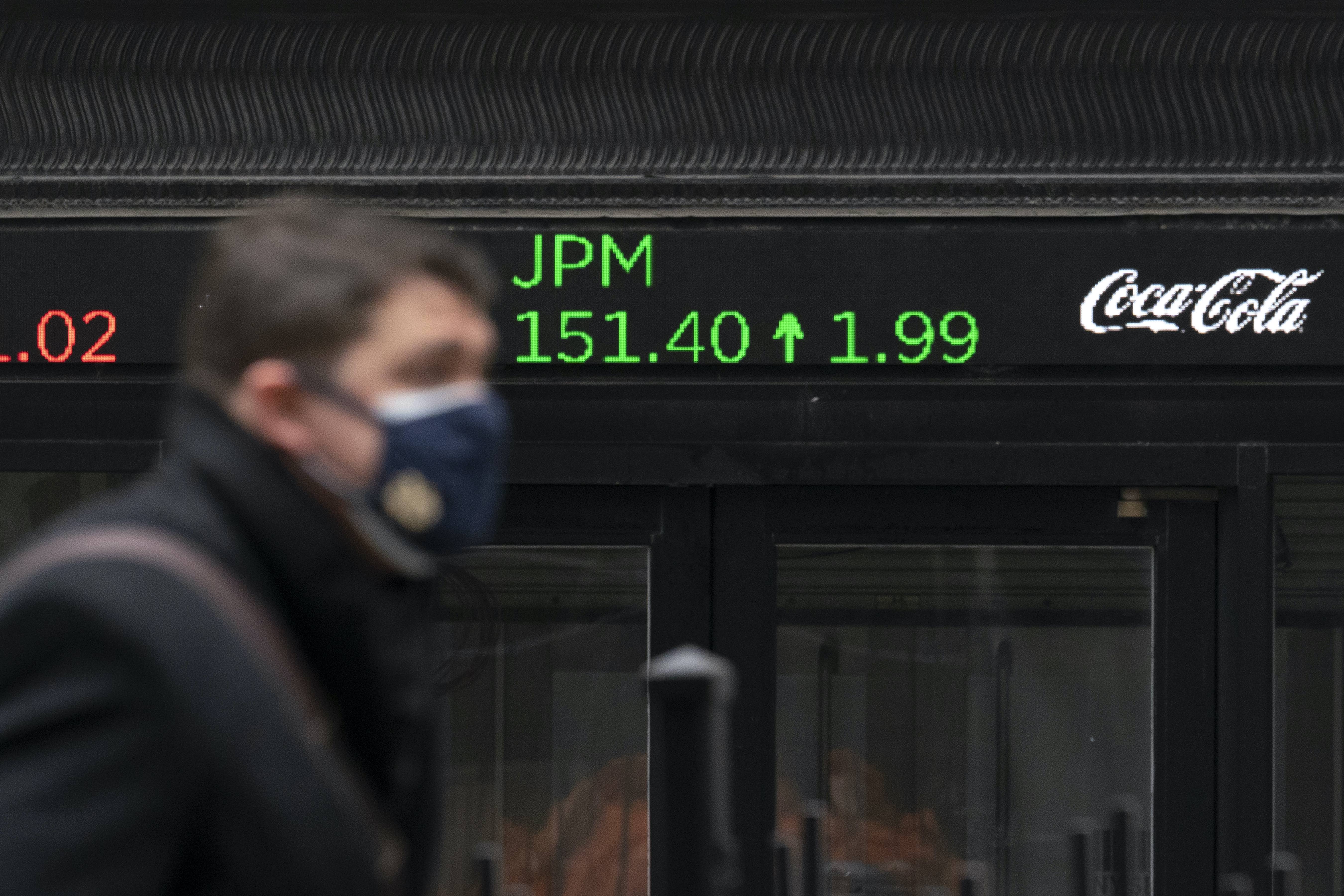 US stocks hover near record highs as bank losses temper gains