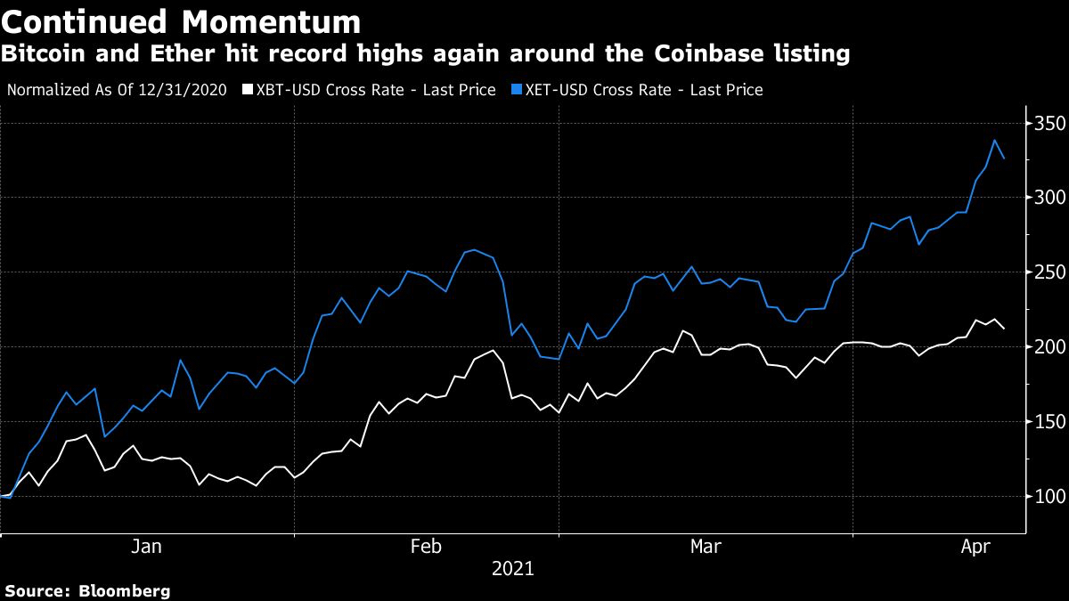 The Coinbase listing “ultimately will deliver more ‘use cases’ for cryptos and should keep the crypto market growing,” said Edward Moya, senior market analyst for North America at Oanda Corp.