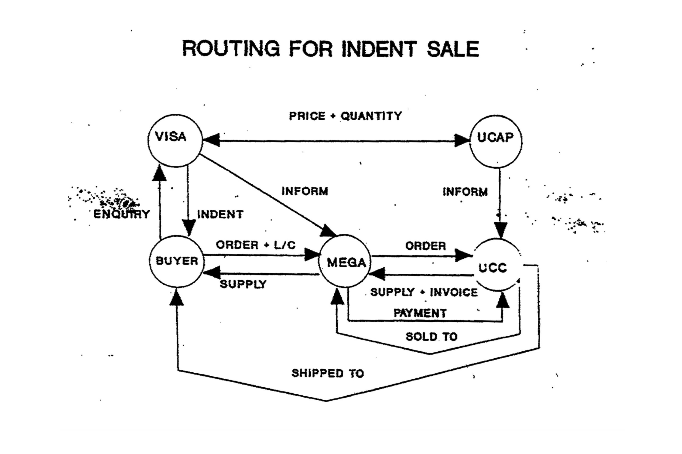 If the buyer agreed, it would place the order with Mega Global Services. UCC would sell the product to Mega Global Services. UCC would arrange a third-party transporter, known as a “freight forwarder”, to ship the goods to the customer, according to the agreement. Visa Petrochemical would sign off on an indent – a document listing out the products imported – for the customer.