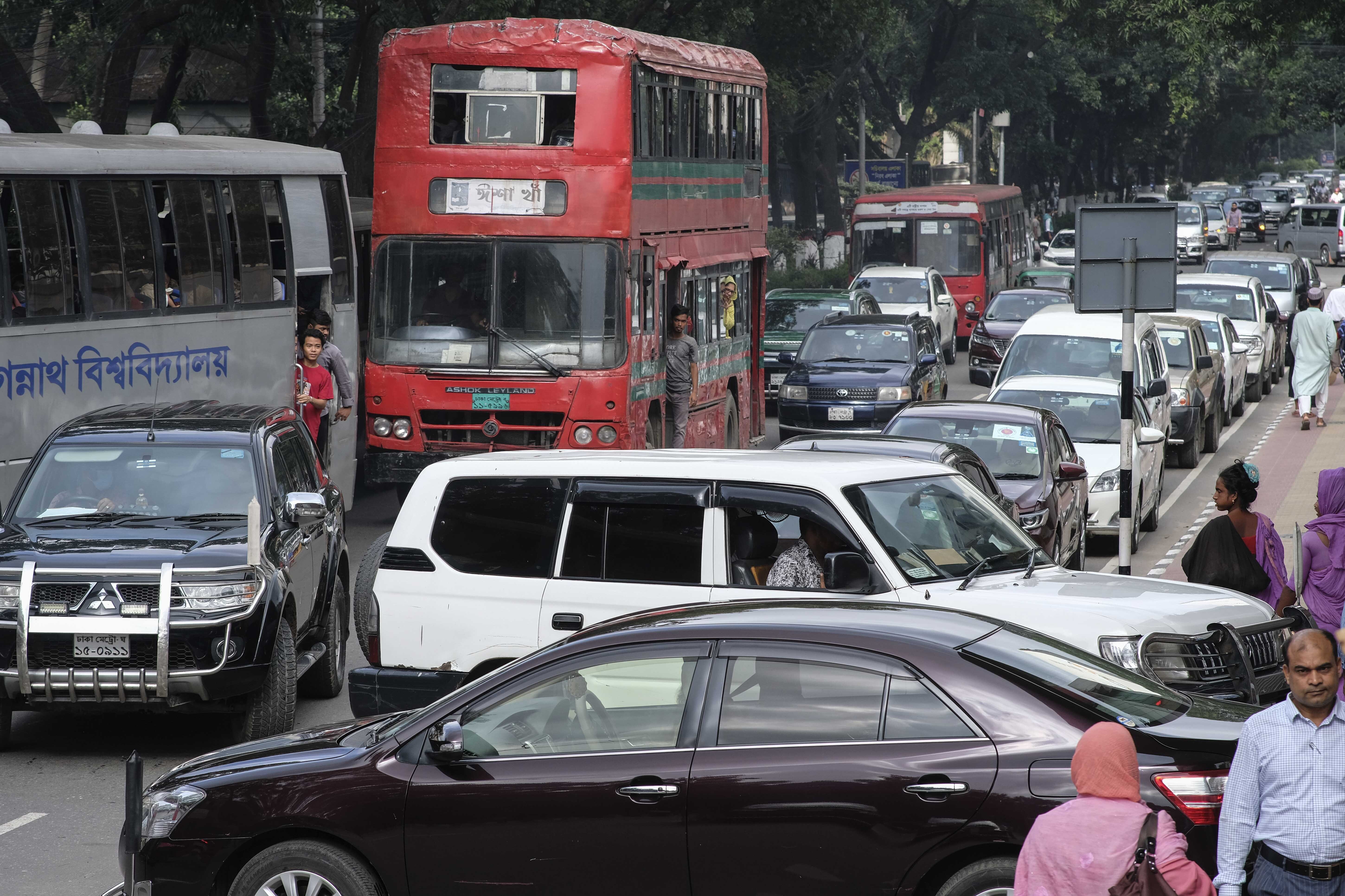 Traffic is congested as employees arrive