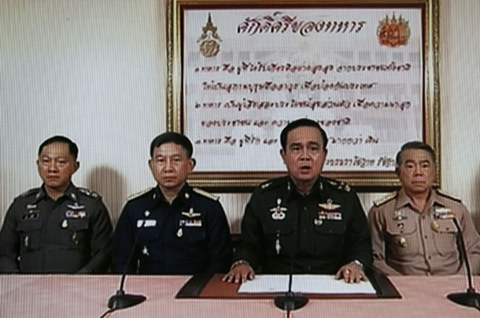 Army Chief General Prayuth Chan-ocha [second from right] announced a coup after his efforts to reconcile rival political factions failed [EPA]