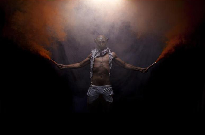 His “Siege” series, seen in the slideshow above, reflects a state of mind in which an individual feels forever under attack. “You see monsters” features Abdullah dressed in traditional Muslim garb with a mask referencing the film Planet of the Apes, representing “the other” as a “sub-human” species.