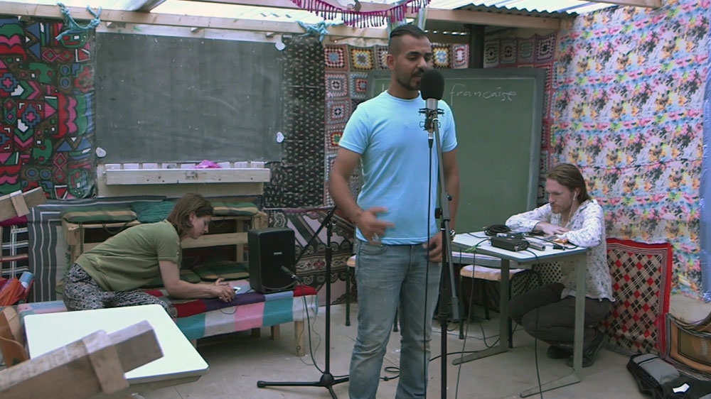 The album’s musicians, performers and engineers found ways to make do in difficult conditions. They painstakingly edited out the constant buzz of the generator that brings electricity to their improvised studio. They even kept recording as bulldozers drove past in February, tearing down half of the camp’s makeshift homes and facilities.