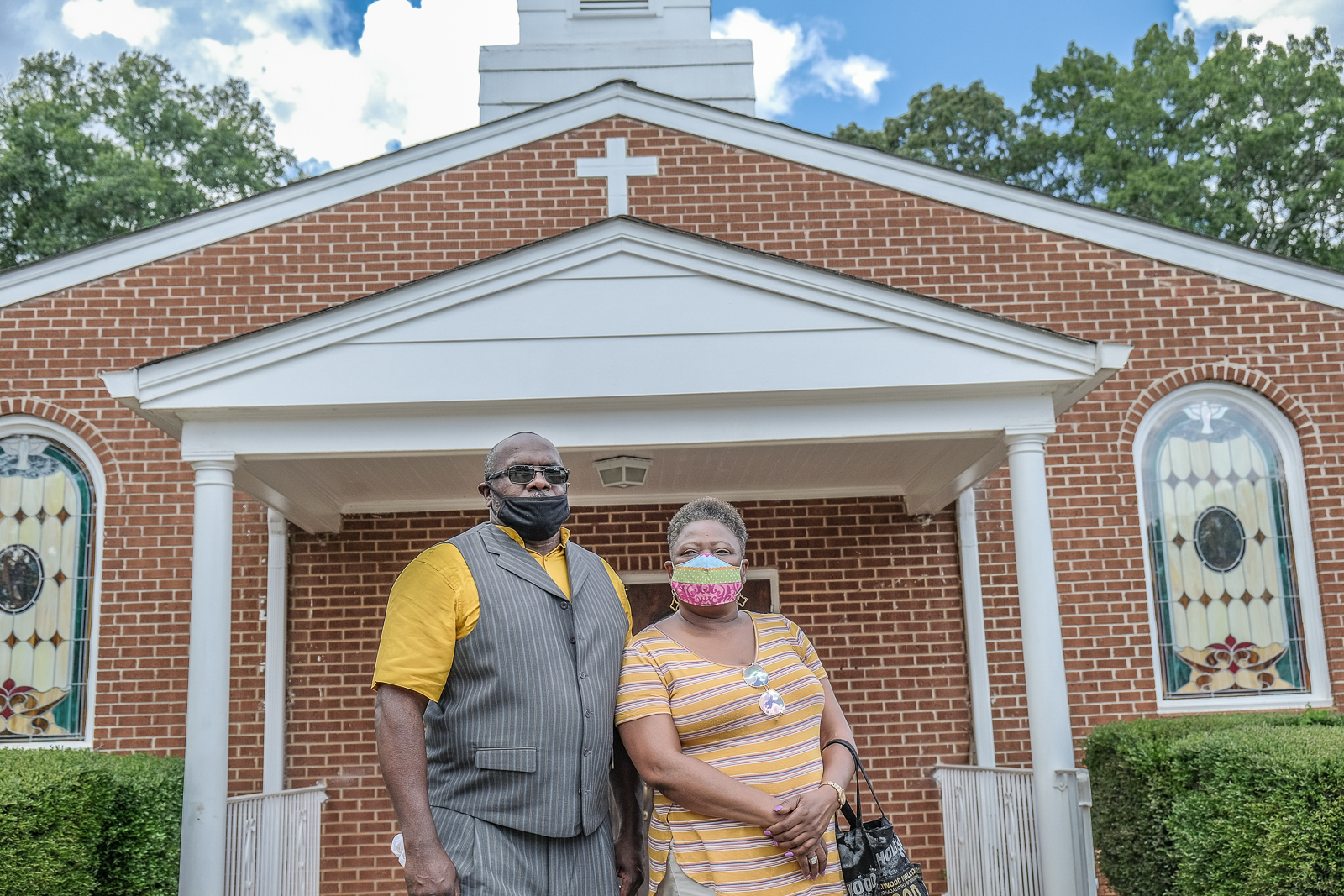Todd and Hope Dorsey stand outside the First African Baptist church in Monroe; their mother is the cousin of George Dorsey and Dorothy Malcolm [Jaclynn Ashly/Al Jazeera]