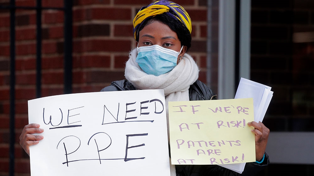 Their demands have been echoed across the US, where health workers continue to grapple with the critical PPE shortages as the COVID-19 coronavirus hits towns, cities and states nationwide. More than 250,000 people have been infected with the virus in the US, with more than 5,000 deaths.