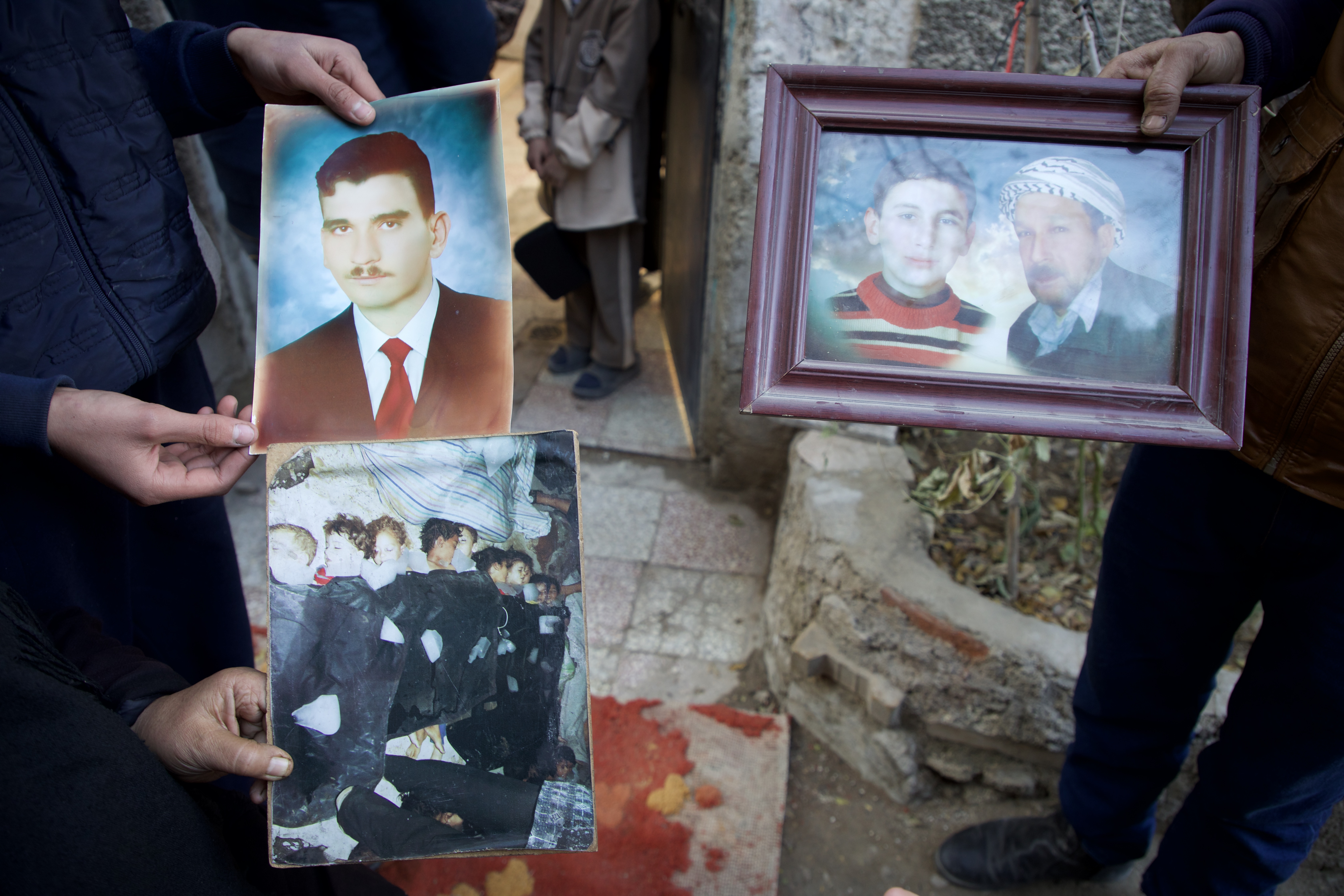 Speaking to Al Jazeera, she held up a photo of eight children wrapped in black blankets, corpses retrieved after the sarin gas attack, suffocated to death.