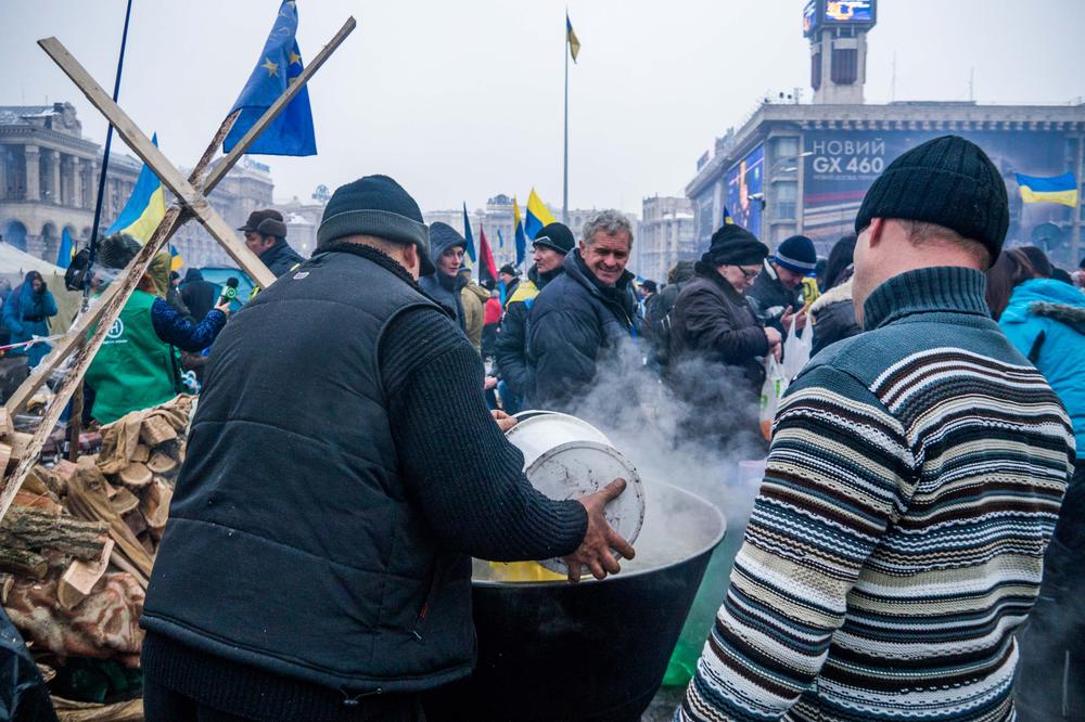 Hundreds of people bring supplies like food, medicine and winter clothes to support the pro-European movement.