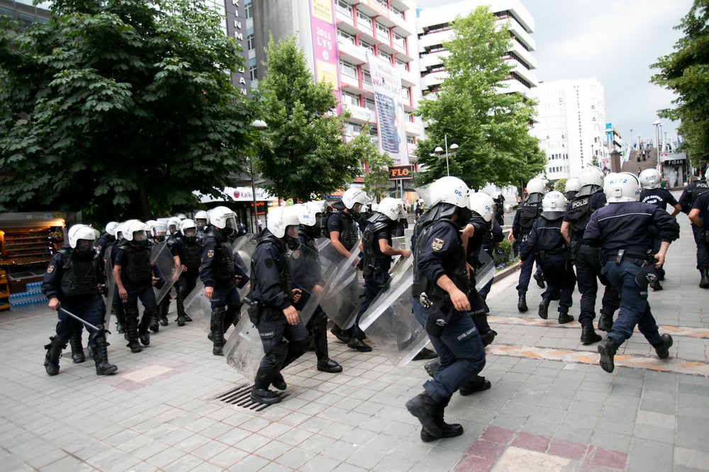 On June 5, thousands of union members gathered in Ankara’s main square to protest. The demonstrations remained largely peaceful until police violently cracked down on the protesters late in the afternoon with tear gas and water cannons. Several people were injured, some severely, and scores were arrested.