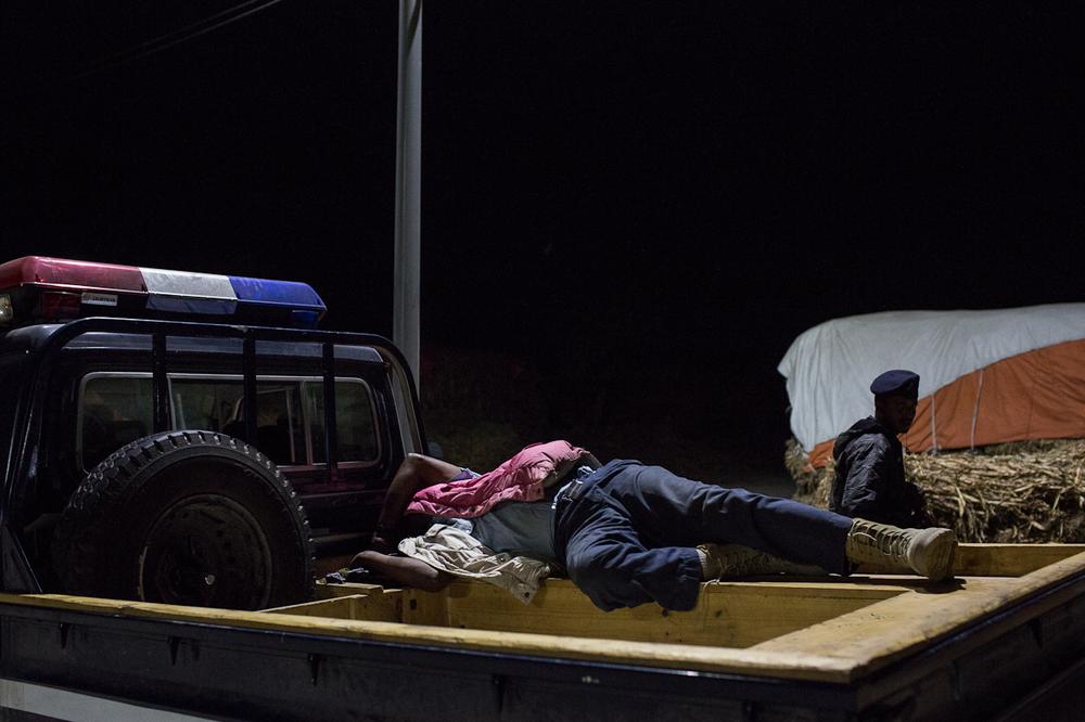 At one point during the patrol, vehicles passed freely through checkpoints as local police sat around chatting and sleeping, some chewing the stimulant khat while on duty. “It’s cold at night and we have to stay awake,” said one Somali police officer. “I chew khat to stay warm while we’re working.”