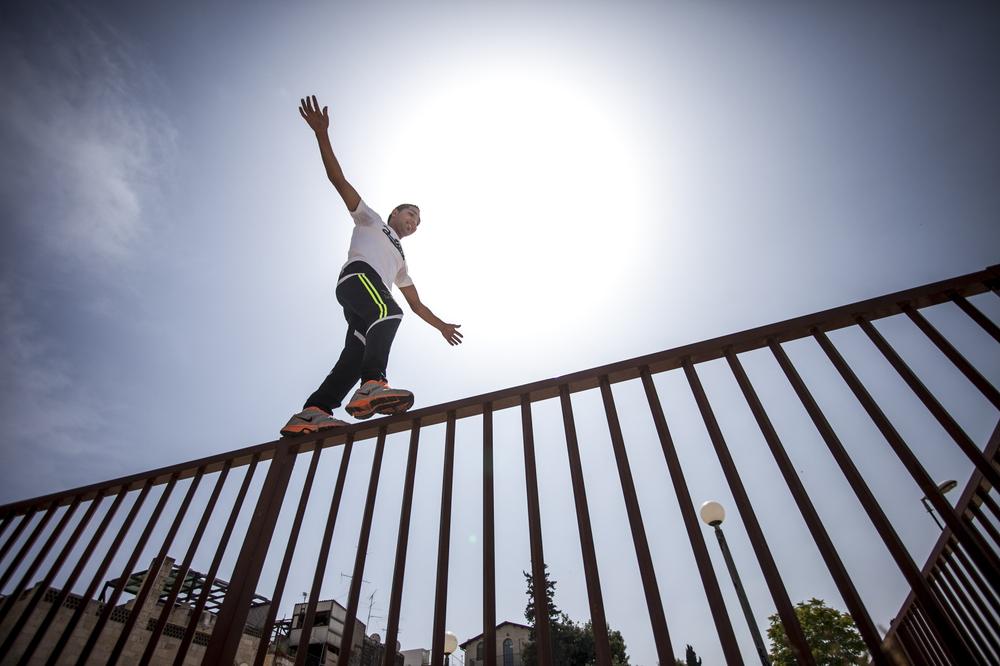 On a rooftop overlooking Jerusalem one recent day, Sami methodically planned his movements before making a jump. He gave one final look towards his friend, who stood back and watched the young man as he made the leap – an impressive flight of several seconds over the heads of onlookers seven metres below.