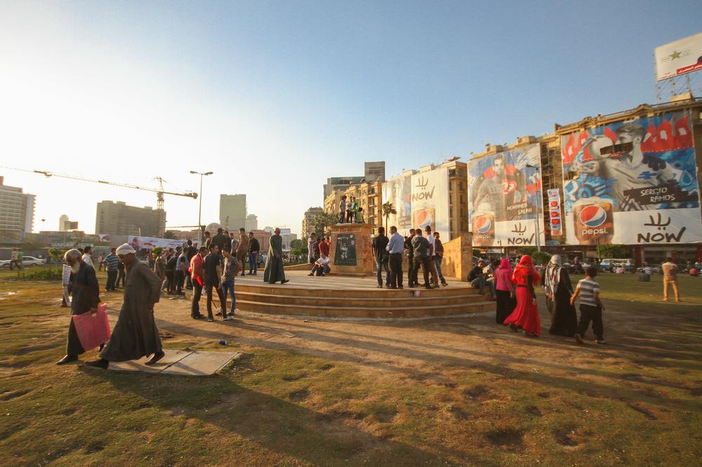 Just days before Sisi’s inauguration, a group of pro-Sisi supporters holding placards and flags in Tahrir Square seemed to have the blessing of security forces, while anti-Sisi protesters were hesitant to gather en masse. Strategic locations like metro stations, government buildings and universities had visible security presence established outside – men in black body armour and helmets were holding Kalashnikovs or long rifles. Security forces in other locations were more discreet. Behind a wall of the Egyptian Museum were several armoured vehicles with mounted machine guns, ready to quickly mobilise should the need arise.