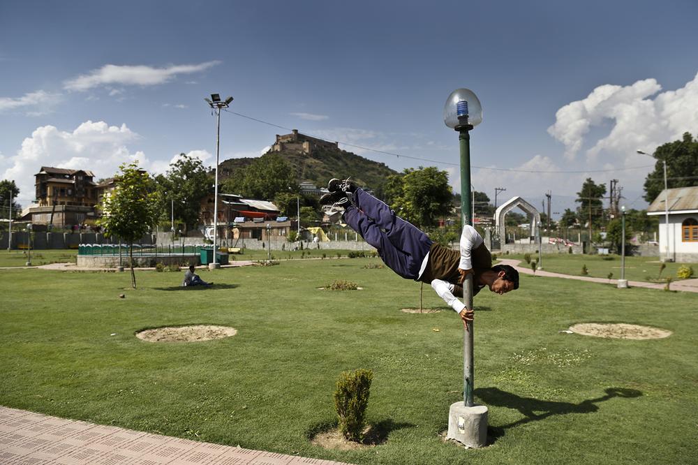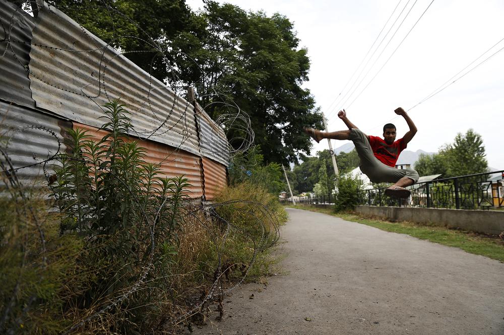 Zahid Shah, 22, a commerce graduate, is the first local traceur. He practises parkour with a group of young people in Srinagar – the summer capital of this disputed Himalayan region.
