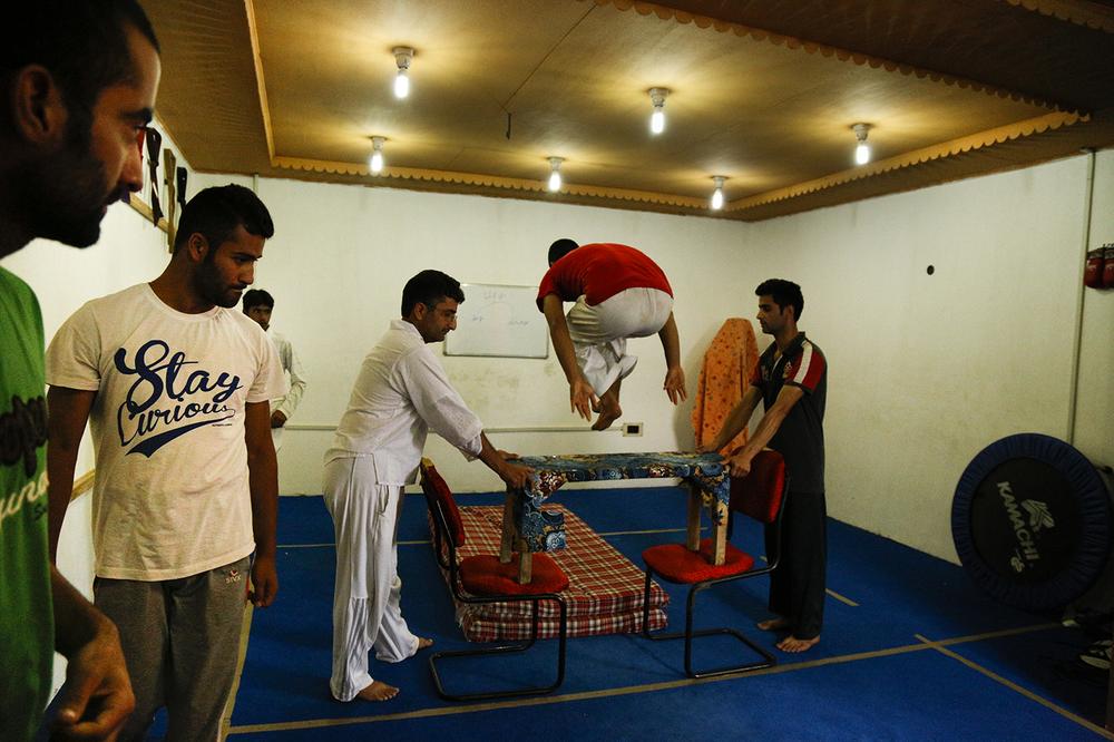 Instead of using proper practice mats for padding, the traceurs practice at Dal Lake, using water as their “practice mat”. They can also be seen using benches and the stairs of Badam Waer – a verdant garden known for its almond trees in Srinagar – as free running obstacles, and they use the Gangbaksh children’s park as a parkour gym.