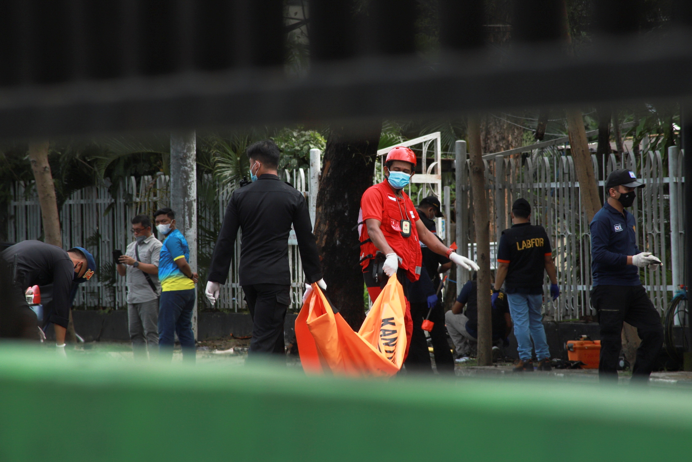 “There were two people riding on a motorbike when the explosion happened at the main gate of the church. The perpetrators were trying to enter the compound,” National Police spokesman Argo Yuwono said on Sunday.