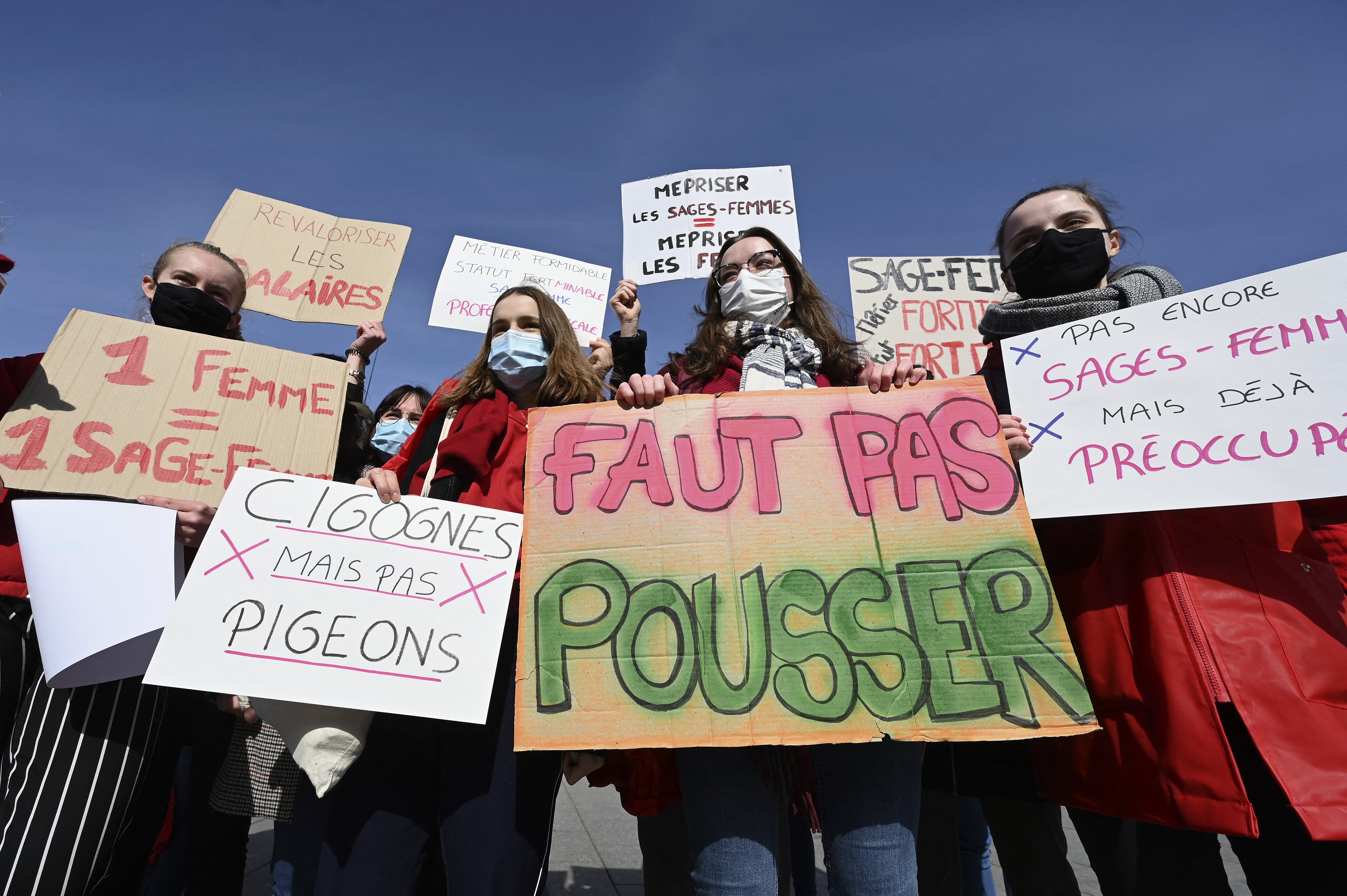 Thousands march to demand gender equality, better working conditions and an end to violence against women.