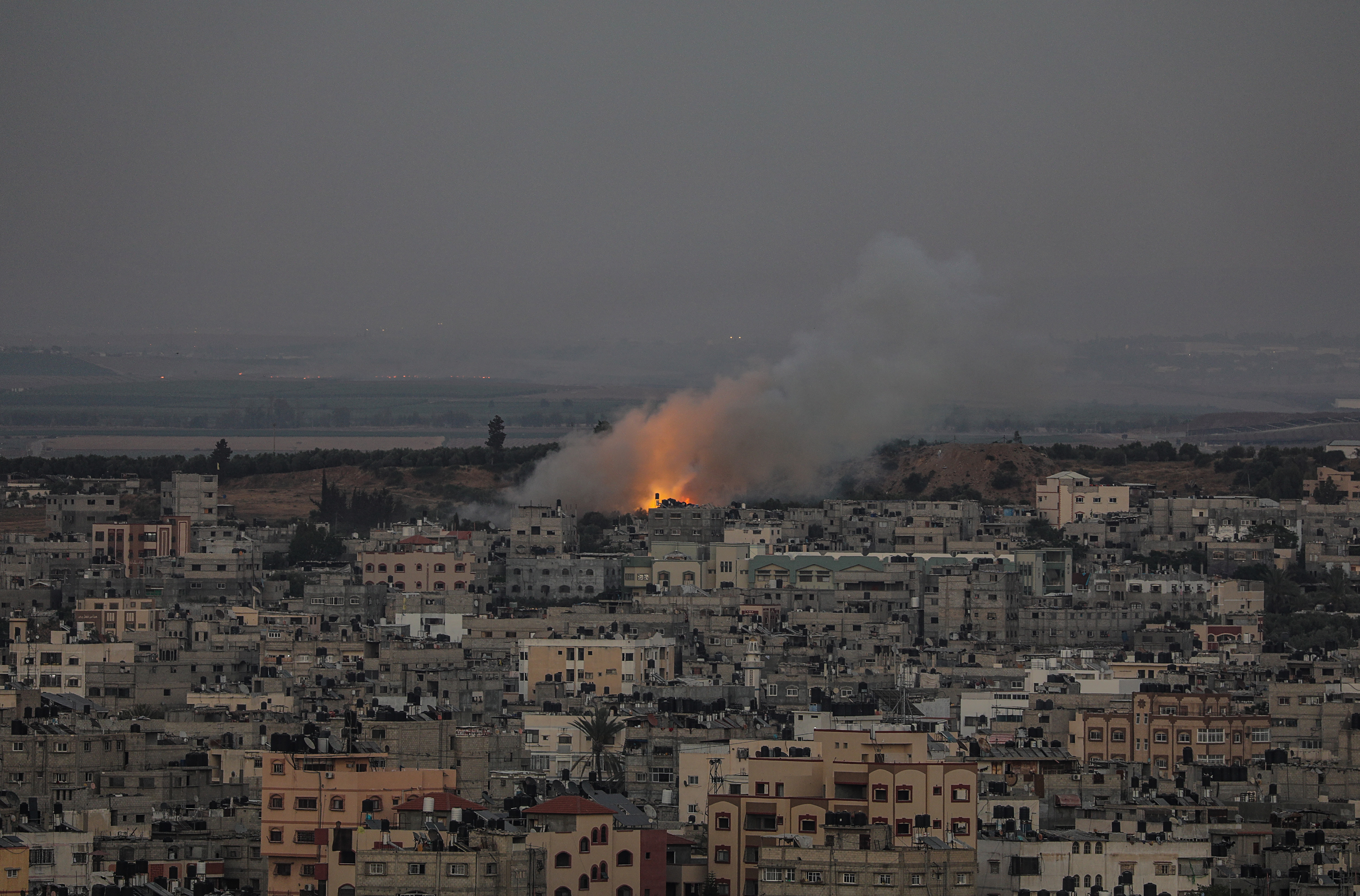 Smoke rises after an Israeli air attack in the al-Shejaeiya neighbourhood in the east of Gaza City. [Mohammed Saber/EPA]