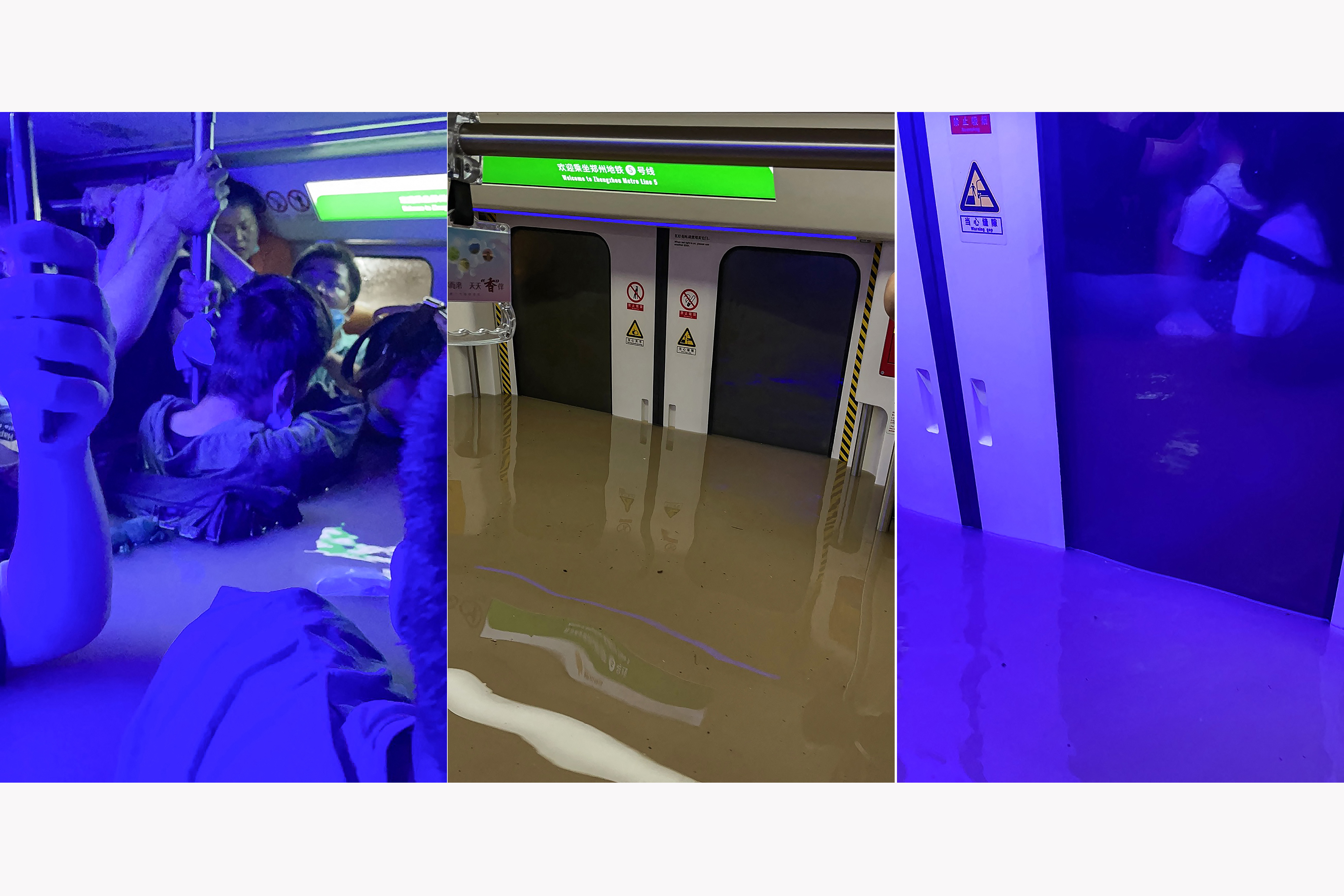 Rainstorms submerged Zhengzhou’s metro late on Tuesday, killing 12 people and injuring five, while city officials said hundreds were rescued from the subway.
