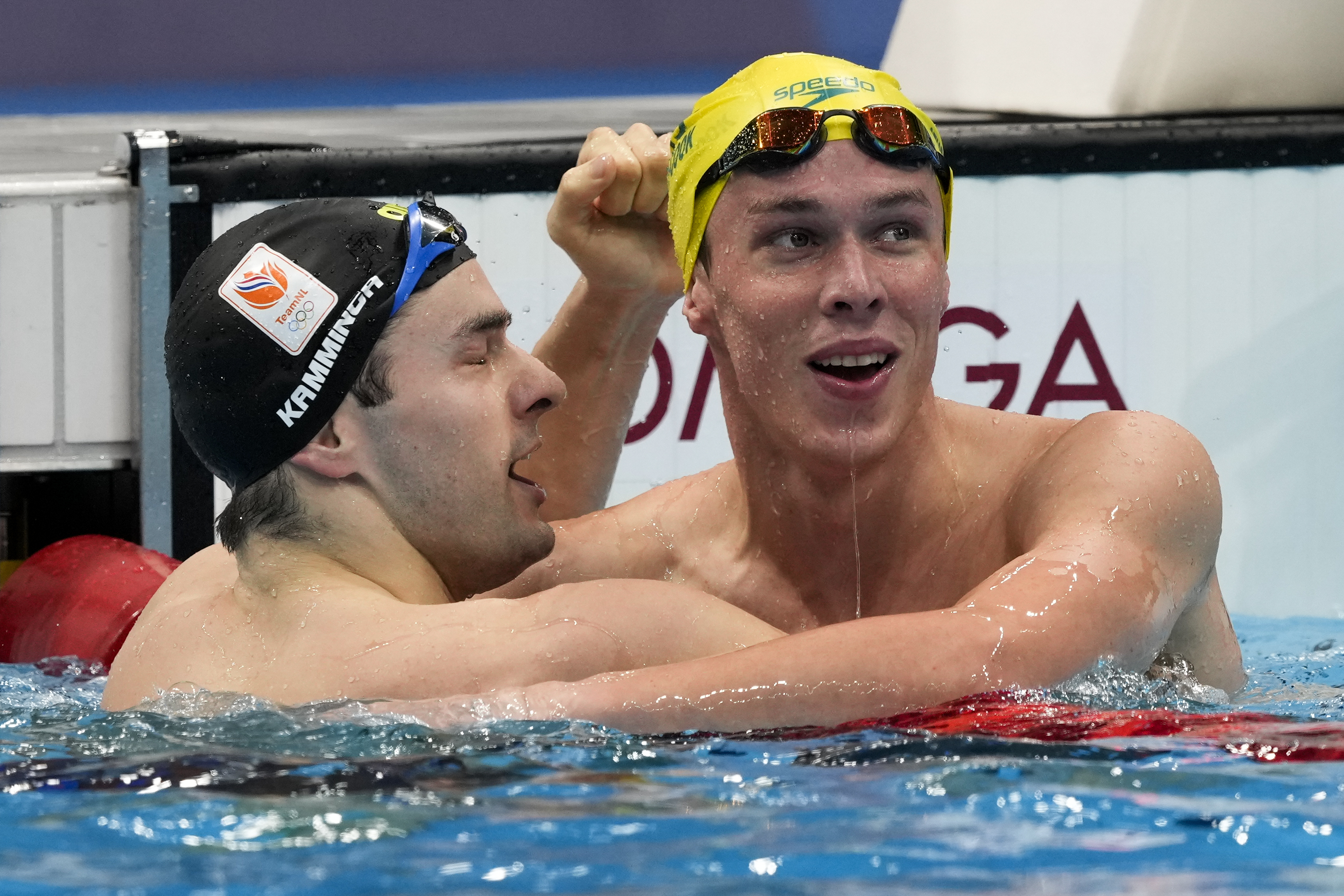 Australia's Zac Stubblety-Cook (right) celebrates after winning the men's 200m breaststroke final. [Martin Meissner/AP Photo]