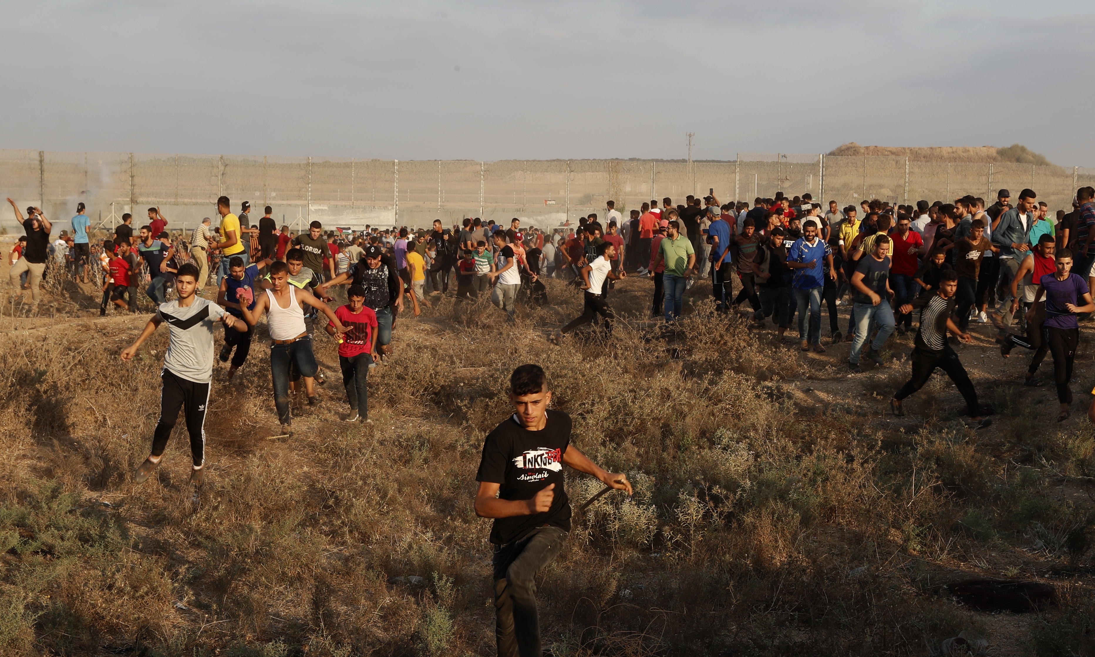 The Israeli military said hundreds of demonstrators approached one area of the fence in northern Gaza and attempted to climb over. It said troops fired tear gas and live rounds at the protesters.
