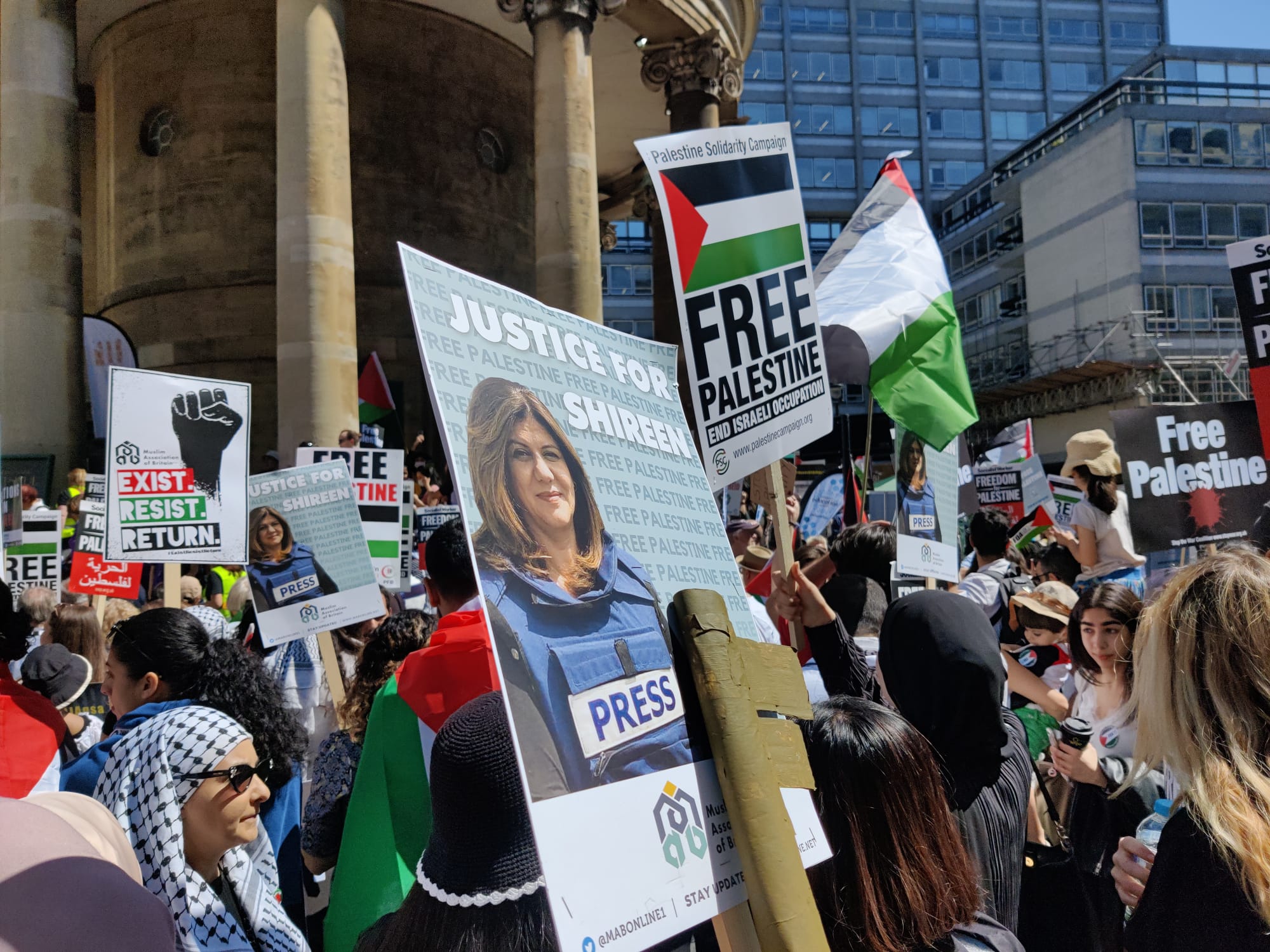 Thousands of people have attended a rally in London in solidarity with Palestinians and Al Jazeera journalist Shireen Abu Akleh, who was killed by Israeli forces on Wednesday.