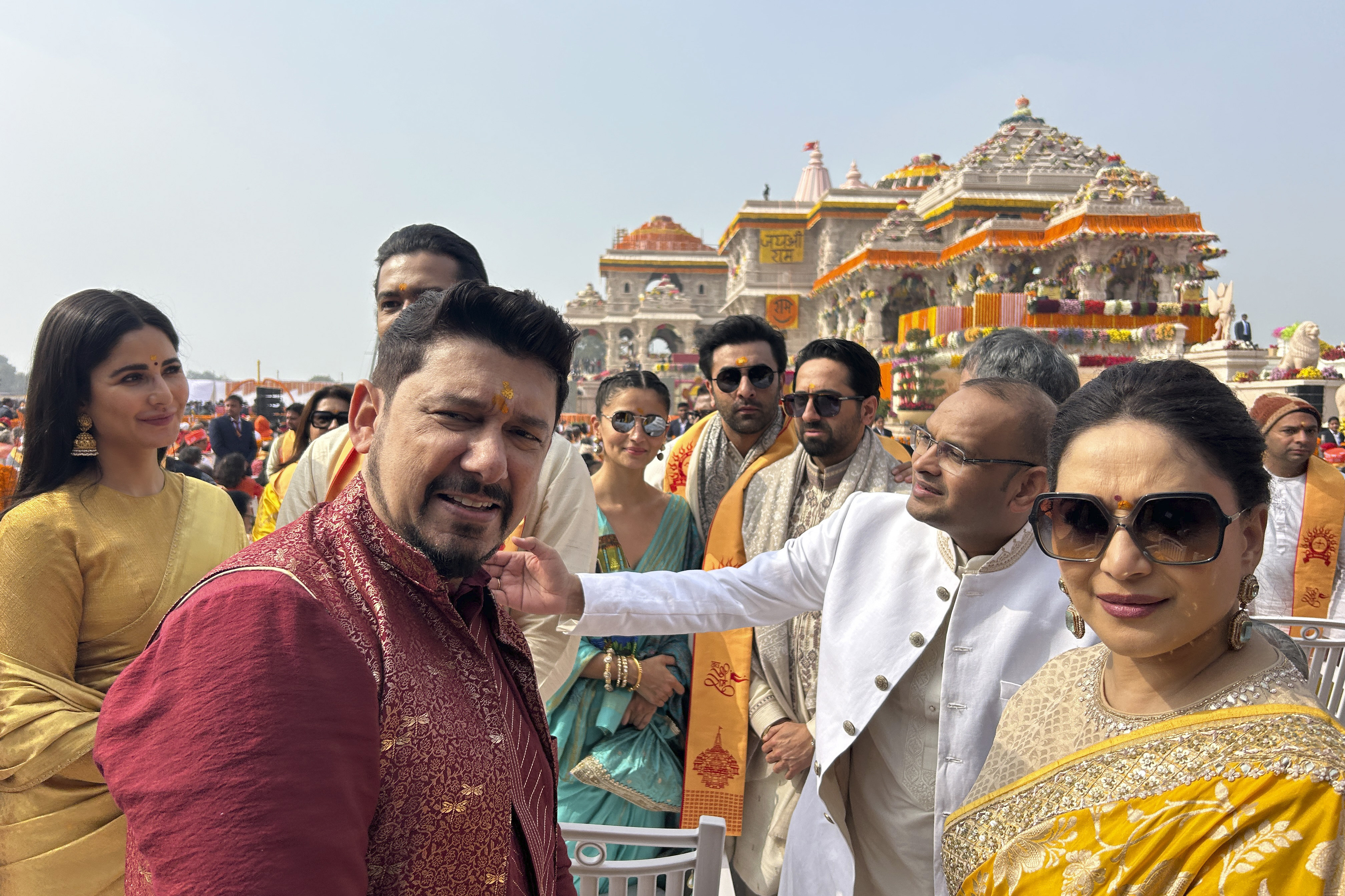 Bollywood actors attend the opening of the grand temple. [Handout via Reuters]