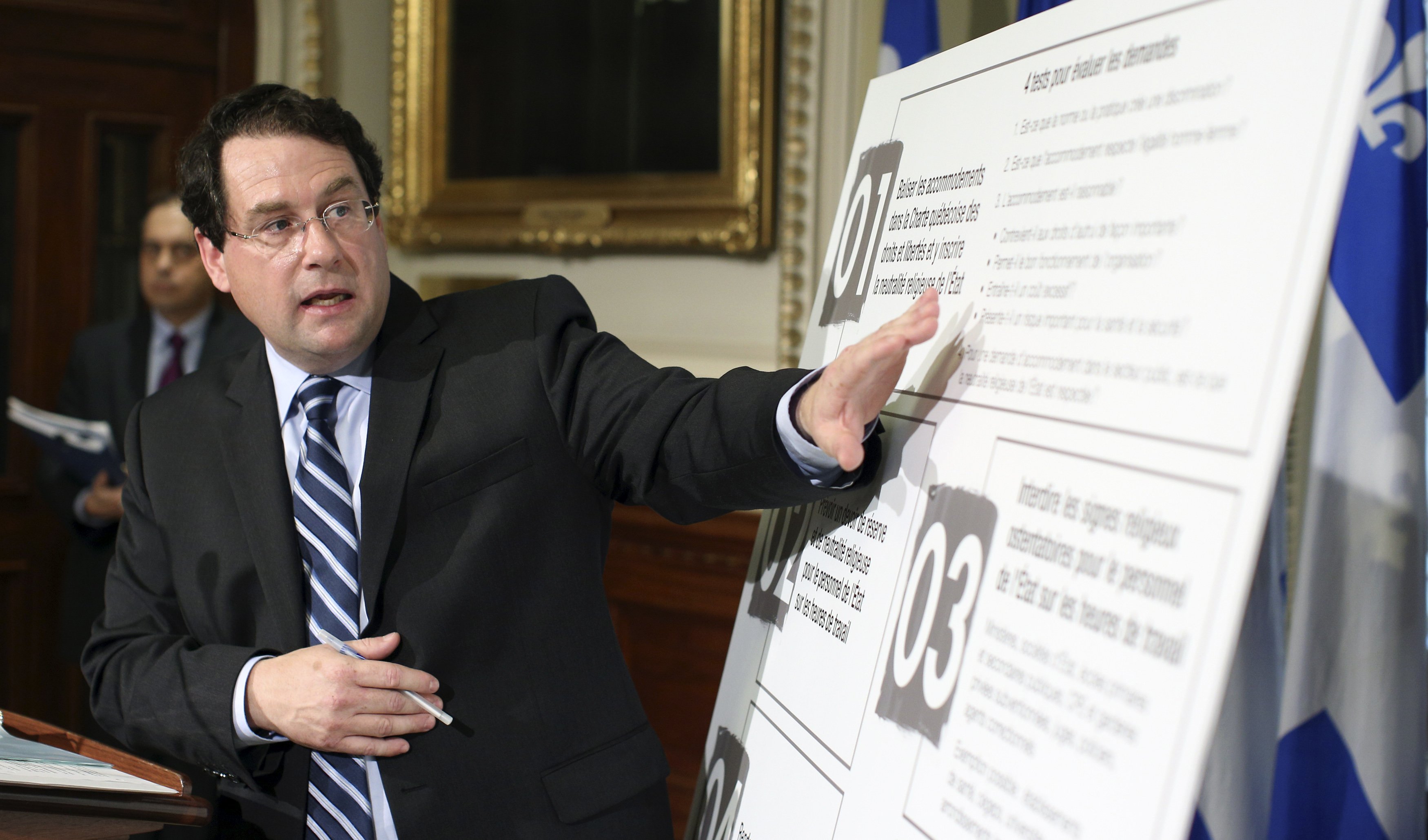 Bernard Drainville: In 2007, there was what we called in Quebec the religious accommodation crisis. There were several stories of religious accommodations that raised a great deal of controversies. Some of these religious accommodations were perceived as unreasonable. A commission was created by the previous government to deal with it, the Bouchard-Taylor Commission, and they issued a report. Nothing was done with this report; it was basically shelved. We were in opposition then and we made a commitment that if we were ever in government, we were going to deal with it by bringing about a framework of rules to deal with these religious accommodations in the future, and to ensure that equality between men and women would never be undermined by religious accommodation in the future.