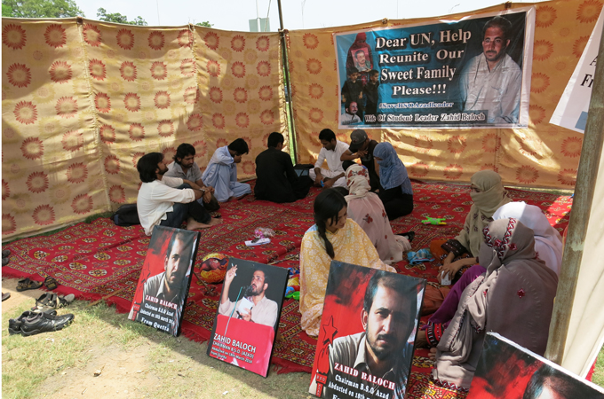 Islamabad, Pakistan – Sitting in a tent outside the Islamabad Press Club, in the baking heat of the Punjab summer, Zerjan Baloch awaits justice.