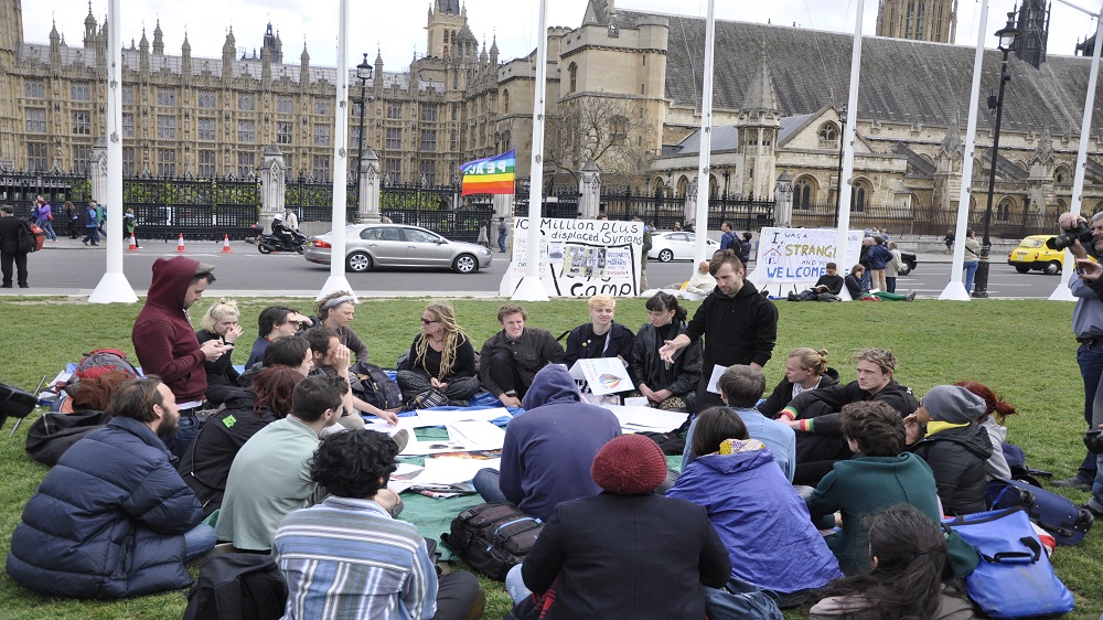 “Occupy Democracy” campaigners have been gathering since May 1 in Parliament Square, a grass-covered traffic island populated by tourists and statues, to call for political reforms including restrictions on corporate influence and a “citizen-led constitutional convention for real democracy”.