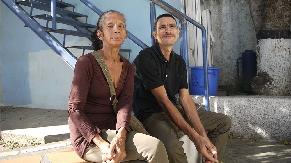 Luis Alberto Machado, 34, and his mother Maria, 60. Luis was diagnosed with schizophrenia in his mid-teens. His mother and sisters look after him. [Sofia Barbarani/Al Jazeera]