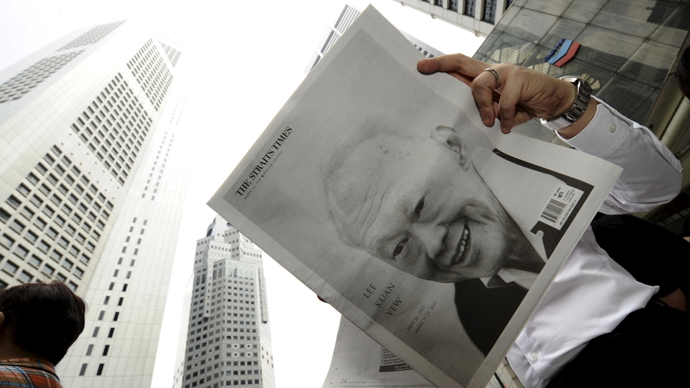 ![A man reads a newspaper bearing the image of Singapore''s former prime minister Lee Kuan Yew, at Raffles Place in Singapore [REUTERS]](https://aljazeeranews-mggx1uo47w.edgeone.app/wp-content/uploads/2015/03/1bc766085a0a4b24846c94a3ebcf76ae_18.jpeg?resize=770%2C513&quality=80)