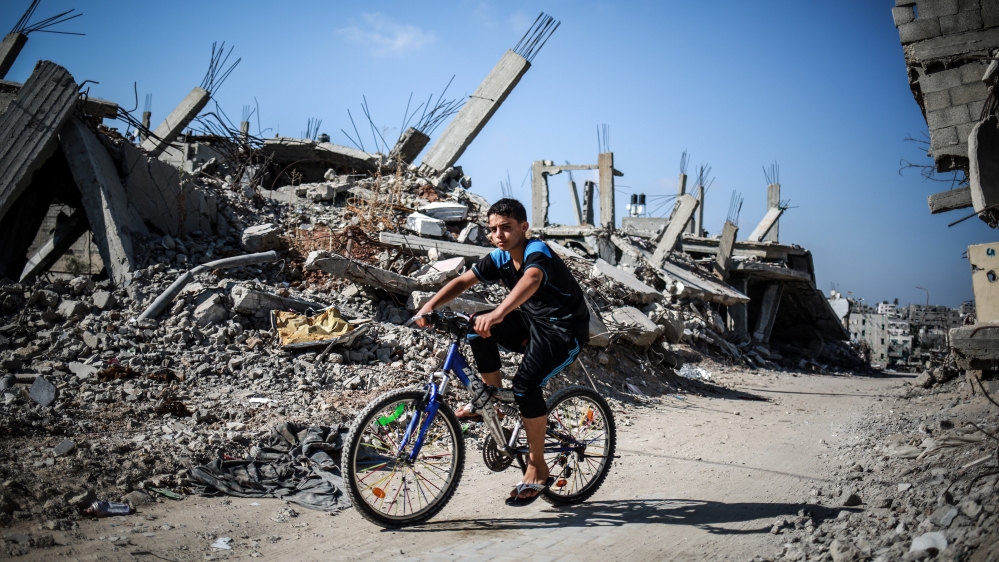 ![A boy ride a bike near the debris of buildings in the Shuja''iyya neighborhood, which was badly damaged in Israel''s most recent attacks on the Gaza strip, in Gaza City [Getty]](https://aljazeeranews-mggx1uo47w.edgeone.app/wp-content/uploads/2015/07/c9bb26b073804cfaa47a1cf19021b3f7_18.jpeg?resize=770%2C513&quality=80)