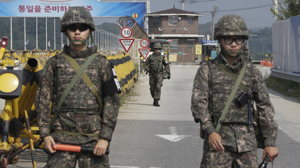 ![A South Korean army soldier walks as his colleague soldiers stand guard on Unification Bridge, which leads to the demilitarized zone, near the border village of Panmunjom in Paju, South Korea [AP]](https://aljazeeranews-mggx1uo47w.edgeone.app/wp-content/uploads/2015/08/5d20358024754ea8b6b2c52153d2ef7e_18.jpeg?resize=770%2C513&quality=80)