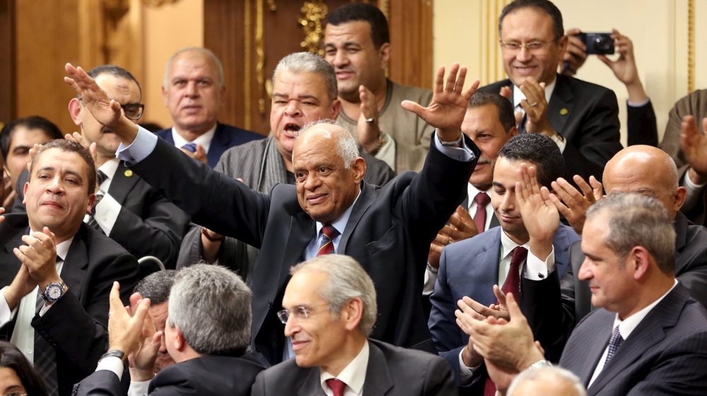 Ali Abdel Al greets members of parliament after he was elected the speaker of Egypt’s parliament [Reuters]