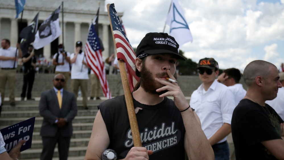 ![A white supremacist carrying a Nazi flag into the entrance to Emancipation Park in Charlottesville, Va. [Steve Helber/AP photo]](https://aljazeeranews-mggx1uo47w.edgeone.app/wp-content/uploads/2017/08/f07c6a629eb04ca9beeca36b8a105382_18.jpeg?quality=80)
