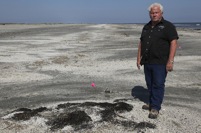 | | 11) Forrest Travirca shows Al Jazeera that the oil under the sand is wet and “fresh”, and is therefore still highly toxic to the environment, wildlife and marine animals [Erika Blumenfeld/Al Jazeera] |
