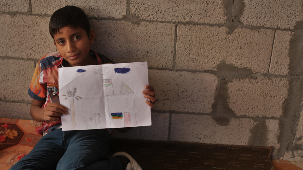 Like others his age, Abu Shehab likes swimming, and said one of his favourite activities is going to the beach with friends. Abu Shebab showed a picture he drew during a therapy session to deal with his PTSD, a scene of a tranquil home with a toppled Palestinian flag. Suddenly, the thudding sound of Egyptian artillery came from the south.