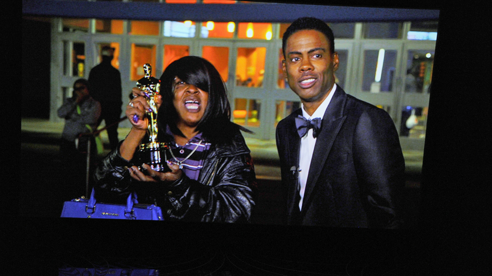 In one pre-taped parody, Rock ventured in a tuxedo to a cinema in the predominantly black Los Angeles suburb of Compton to ask several African-American moviegoers there whether they had seen any of the films nominated this year for best picture. None had.