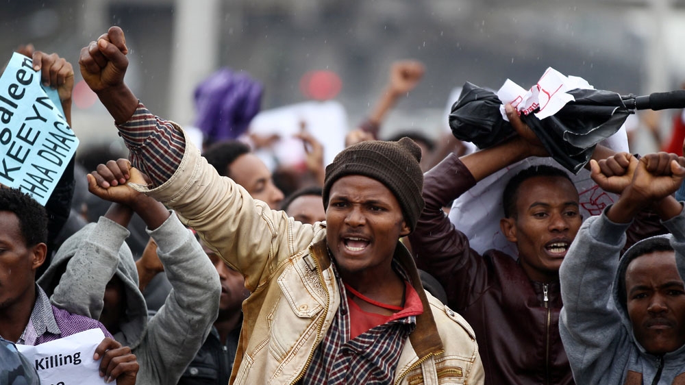 The rally was organised by opposition groups from the Oromo, Ethiopia’s biggest ethnic group, who have held protests for months against what they say is government discrimination. They have been joined recently by ethnic Amharas, and protests have been reported in other parts of the country.
