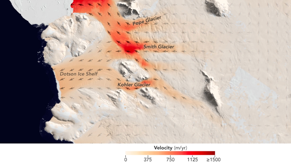 Flow speeds of the Smith, Pope and Kohler Glaciers and the Dotson Ice Shelf.