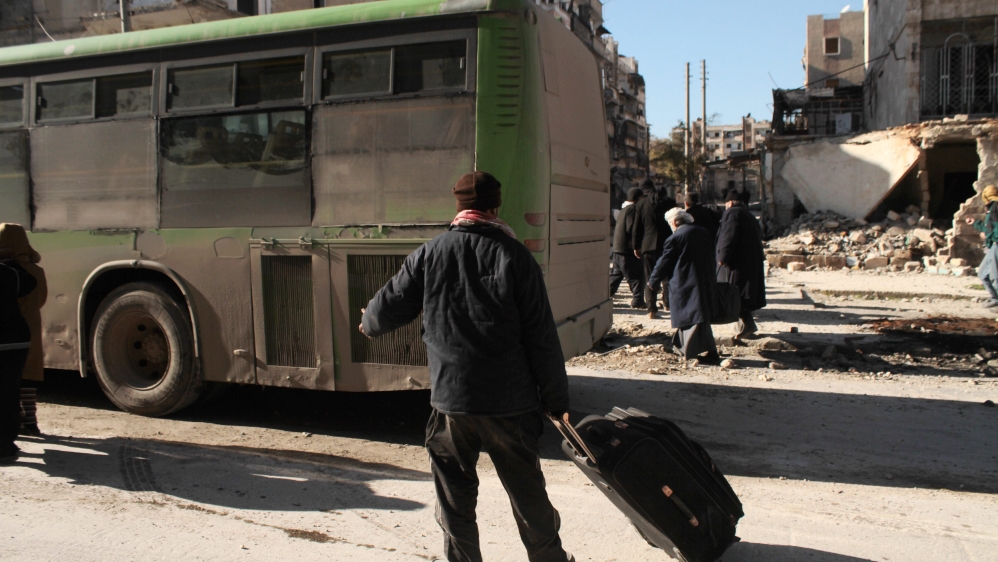 Most of the evacuees are taken to rebel-held Idlib province or Aleppo countryside.