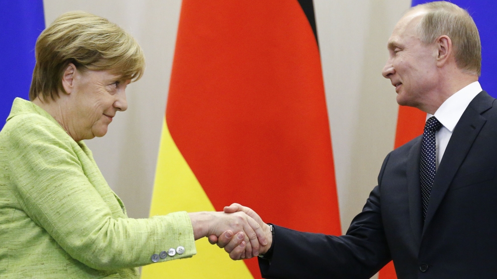 German and Russian leaders discuss Ukraine and Syria conflicts as ties between the West and Moscow remain tense.