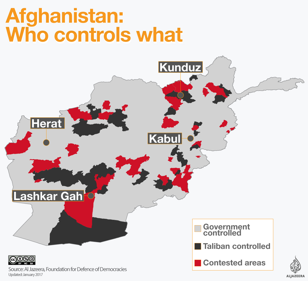 More than 16 years after they were driven from power, almost half of the country is either contested or under the control of the Taliban.