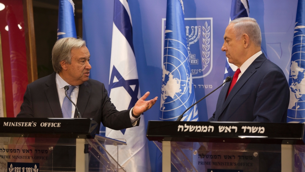 At a joint press conference with Guterres, Netanyahu said his country has been treated unfairly and urged Guterres to address the issue.