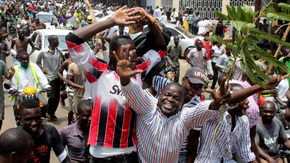Supporters of opposition leader Raila Odinga celebrate along the streets after President Uhuru Kenyatta''s election win was declared invalid by a court in Kisumu